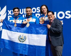 La primera medalla para El Salvador la aportó el equipo formado por Johana Pineda, Verónica Rivas y Natalia...