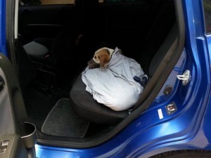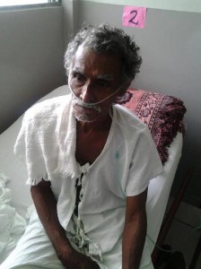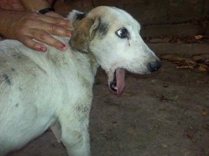 Así lucía “Veloz” cuando era llevado por sus bienhechores hacia San Salvador, donde empezó desde este jueves su tratamiento. El perro, cuya ama carece de