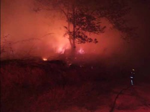 El Cuerpo de Bomberos de El Salvador, unidad central de San Salvador, sofocó un incendio de maleza que amenazaba a residentes sobre la calle a Tonacatepeque,
