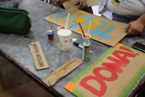 Un equipo de voluntariado y de liderazgos juveniles comunitarios se reunieron el pasado sábado para elaborar insumos visuales de motivación para que conductores bajen su