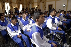 El Presidente Salvador Sánchez Cerén entregó el pabellón a atletas que representan a El Salvador en estos Juegos Juveniles. Esta es la primera vez que