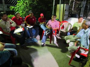Nerio, primero a la izquierda (con chumpa) aparece durante una reunión con líderes comunitarios Lincoln-Metrópolis, cuando era Alcalde en Mejicanos, en 2012. El FMLN cree