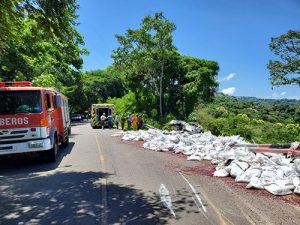Una rastra que transportaba Paquetes Agrícolas se accidentó dejando 4 lesionados y una víctima mortal, en Ciudad Victoria, Cabañas. Foto: Redes sociales La mañana de