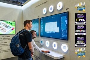 Durante la Feria Audiovisual más grande de EE.UU se mostraron soluciones como SmartThings Pro y las pizarras interactivas con IA. Foto: Samsung. San Salvador. Una
