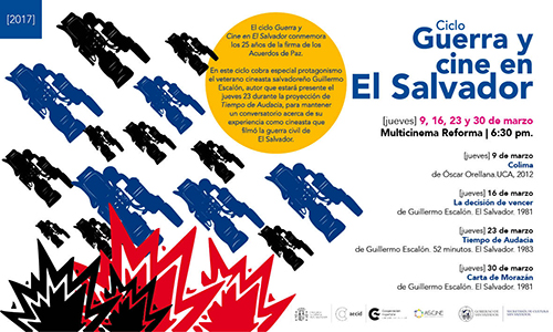 El protagonista de este ciclo es el veterano cineasta salvadoreño Guillermo Escalón y su presentación iniciará con la película Colima, de César Orellana, el jueves 9 de marzo para continuar los días jueves 16, 23 y 30 del mismo mes en Multicinema Reforma, a las 6:30 p.m.