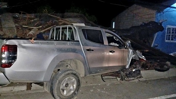 José Wilbert Amaya Aguilar, de 47 años manejaba el pickup que se ve en la foto y fue el responsable de la muerte de una pareja de esposos adultos mayores, ocurrida en km 176 de la carretera Ruta de Paz, cantón El Aceituno, Yoloaiquín, Morazán Sur. En estado de ebriedad chocó contra la casa de las víctimas la anoche del 6 de marzo pasado, informó la PNC.