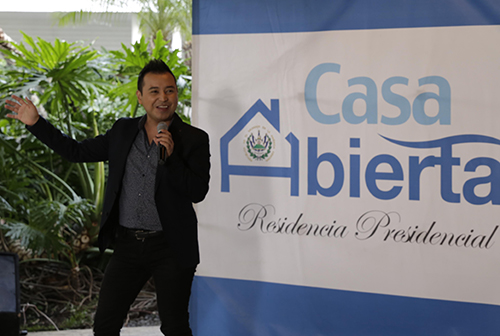 Previo a interpretar su canción original, Soriano dijo que “me alegra mucho que él (Presidente Sánchez Cerén) tenga esta forma de ser y que su gobierno sea tan cercano a la gente y permita espacios como Casa Abierta donde puede venir la gente a expresarse”.