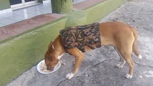 “Canelo” hasta se ha ganado un chaleco camuflado hecho por el sastre de la guarnición, lo que lo hace ver como un miembro más de la gran familia del Destacamento Militar Nº2.