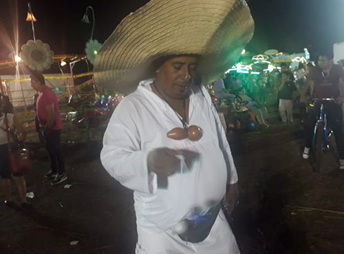 Anda de fiesta en fiesta patronal encarnando al Cipitío, al tiempo que vende sus triqui tracas y otros productos con los que despierta la curiosidad de la niñez.