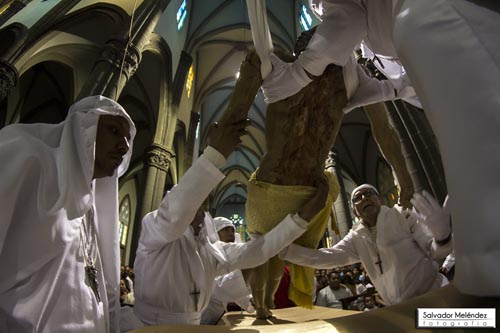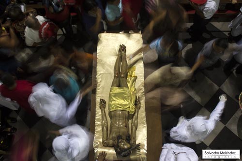 Corren a Adorarle y pedirle perdón. Los feligreses que han esperado en silencio el descenso de Jesús desde la Cruz, corren para adorarle y dar gracias por su sacrificio, diciendo “gracias, mi buen Jesús, gracias. Ahora ayúdame para que yo me gane el Cielo”.