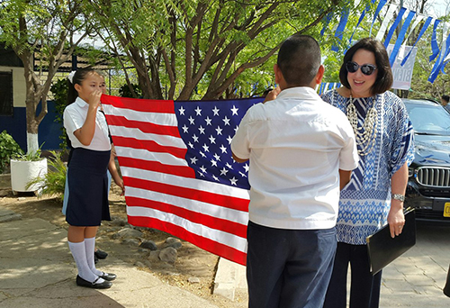 La Embajadora de Estados Unidos en El Salvador, Jean Manes, viajó hasta Morazán, en el oriente del país, para conocer inaugurar una obra escolar que se ha concretado con el apoyo de su país.