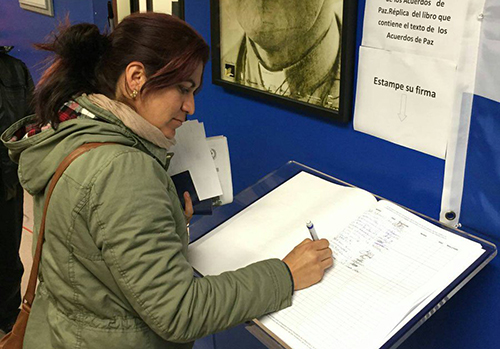 El libro ha sido firmado a la fecha por la ciudadanía y por diplomáticos, entre otras personas, como parte de su apoyo a la campaña #SoyPaz, que impulsa el gobierno en el 25o Aniversario de los Acuerdos de Paz.