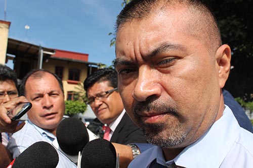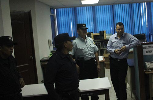 Tras la entrega voluntaria, unidades policiales llegaron al tribunal para custodiar al exgobernante, quien tiene orden de captura por los delitos que se le atribuyen.