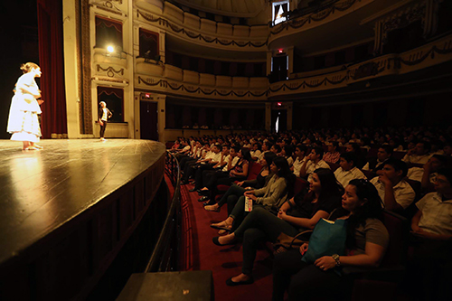 La obra fue presenciada por estudiantes de diversos centros de estudios de San Salvador y persona-lidades de las instancias que lo patrocinaron, entre estas, la Secretaria Vanda Pignato.