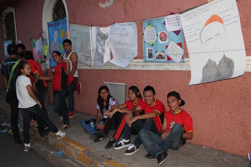 Un grupo de unos 120 estudiantes, pertenecientes a tres secciones del bachillerato, se dedica a hacer diversos dibujos alusivos al mártir y luego son expuestas al público en una de las concurridas calles ahuachapanecas, donde pasa el Santo Entierro el Viernes Santo.