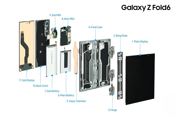 Disipan el calor para evitar que los teléfonos inteligentes se sobrecalienten. Cuanto más grande sea la cámara de vapor, mejor podrá disipar el calor y permitirá que los dispositivos mantengan un rendimiento estable. Samsung incluyó en el Galaxy Z Fold6 una cámara de vapor que es aproximadamente 1,6 veces más grande que la del Galaxy Z Fold5.