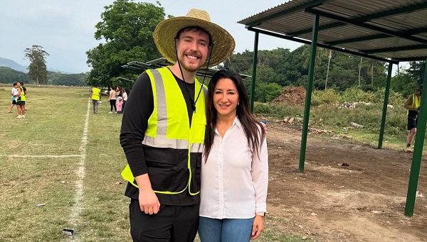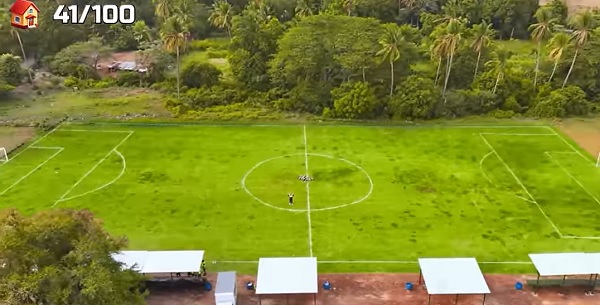Además, MrBeats construyó una cancha de fútbol para que la niñez y adolescentes practiquen ese deporte en un área adecuada y, para ello, les regaló uniformes y pelotas.